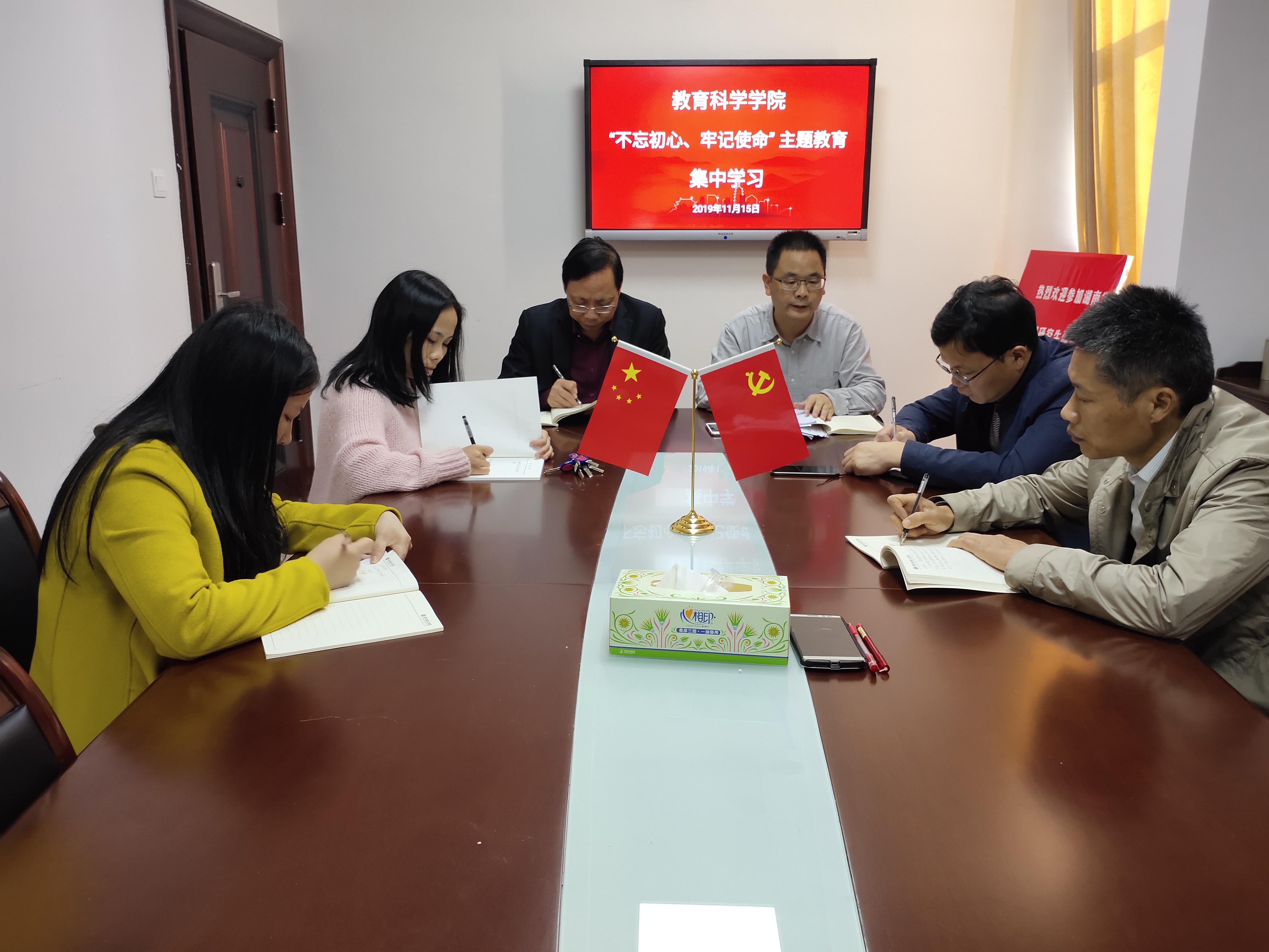 11月15日上午,教育科学学院在综合楼314会议室举行主题教育集中学习。学院领导班子成员、学校咨询专员、学院教师及研究生党支部负责人参加学习。