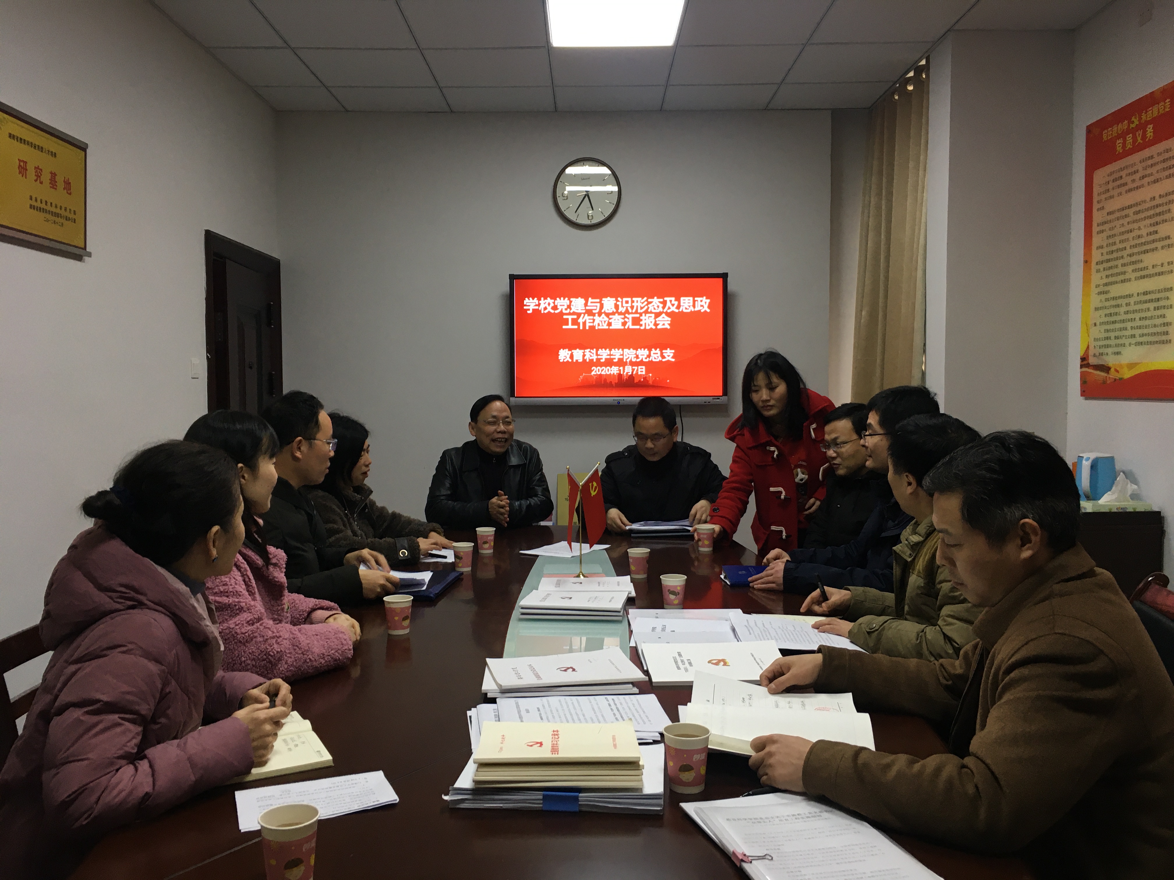 1月7日下午,学校党建工作年度考核小组一行8人,在组长、学校巡察督查室主任张剑桥的带领下,到教育科学学院考核检查2019年度党建工作。