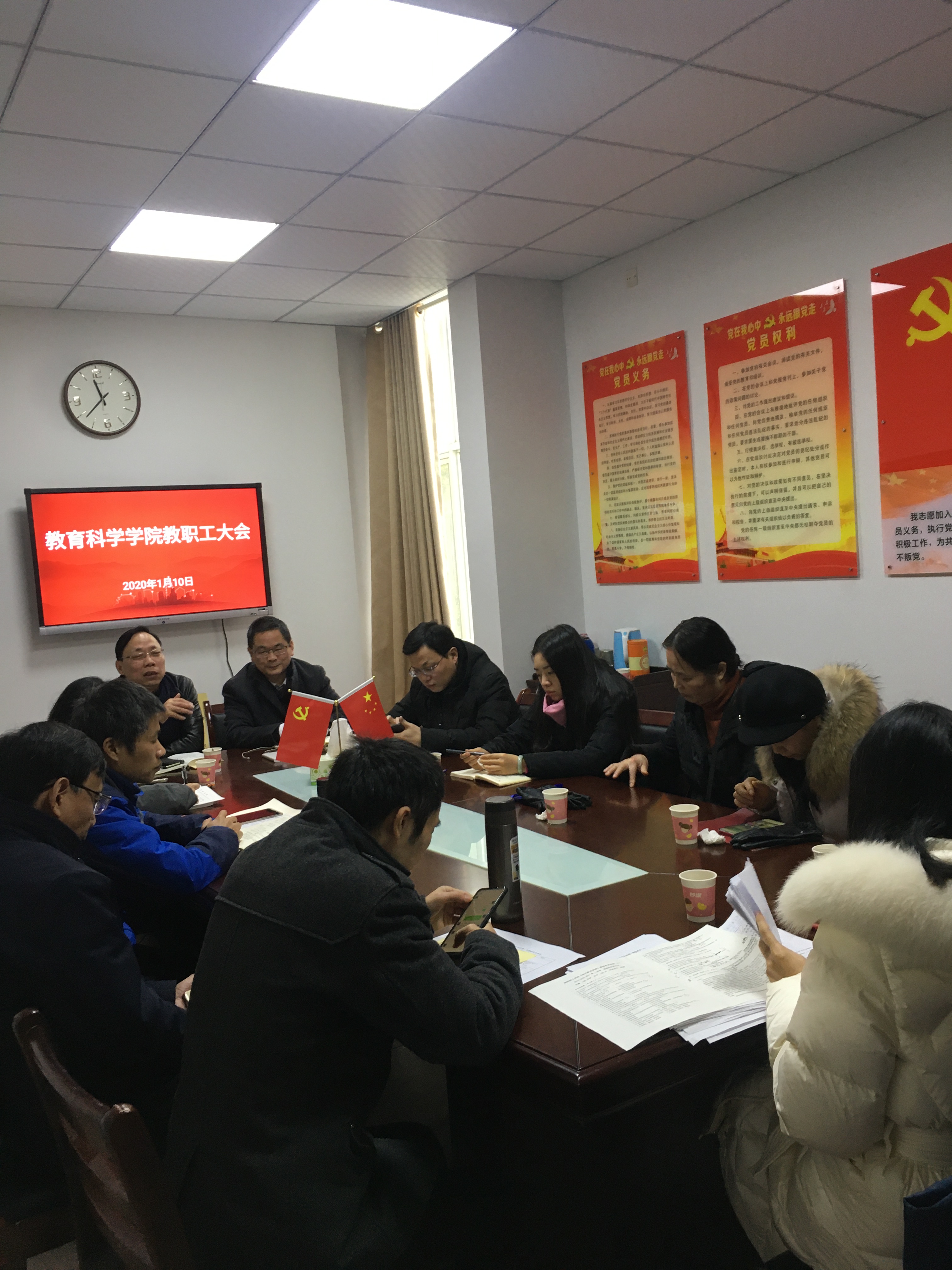 1月10日上午,教育科学学院在综合楼314会议室召开全院教职工大会,对分配方案及期末相关工作等事项做说明和安排。