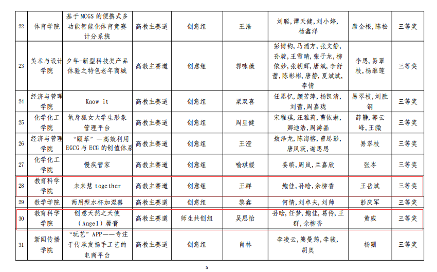 近日,学校下发《关于公布湖南理工学院2020年“互联网+”大学生创新创业大赛结果的通知》(湖理工政通[2020]30号),正式公布学校2020年“互联网+”大学生创新创业大赛决赛结果。为助力研究生成长成才、推动研究生教育改革与发展、落实创新创业教育工作,教育科学学院组织2019级全体教育硕士积极参赛。经学院初赛推荐,校复赛专家网络评审,报学校工作领导小组审定后,唯一的研究生获奖项目由教科院学生入围。最终,曹宣同学荣获二等奖1项,罗艳伟、王群和吴思怡同学荣获三等奖3项。