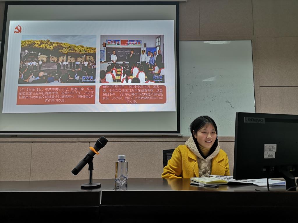 12月1日上午,教育科学学院研究生党支部“学习习近平在湖南考察时期重要讲话精神”专题党课在1号教学楼1302教师开讲,学院研究生党支部书记王炜主讲。全体研究生党员及党外学生参加学习。