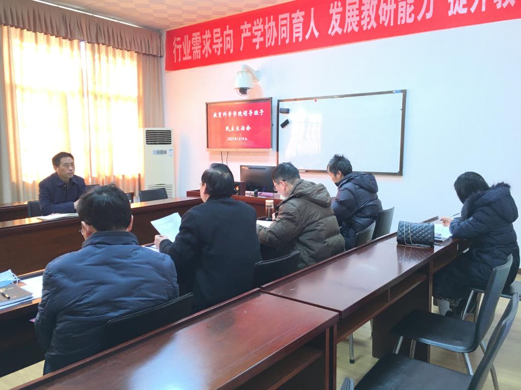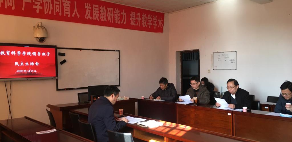 1月14日上午,教育科学学院党总支民主生活会在1教学楼1303A教室召开。校党委委员、副校长张国云与会指导。学院党总支委员及领导班子成员、学校咨询室咨询员参会,无党派领导干部应邀与会,学院专职组织员列席。