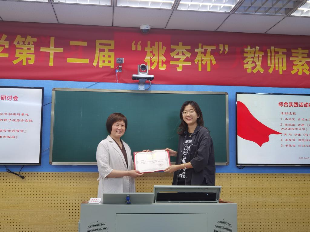 第二个环节是副校长陈党荣老师和德育处主任黄灿老师做关于劳动教育的系列讲座。陈党荣提出,以劳动基地为“土壤”,以教研氛围为“空气”,以课程开发为“水分”,以教师团队为“阳光”,让劳动的种子在综合实践活动中发芽。东方红小学将综合实践活动与菜园种植相结合,开发了“我的小种植”、“蔬菜营养小讲师”的系列综合实践活动课程。黄灿分享该校对于校务劳动课程化的探索,将劳动内容细分为18个部分,从课题、劳动方法提示、课堂组织建议、评价方式四方面编排劳动课程。黄灿表示今后将拓展家务劳动、公益劳动,并将劳动方法图文化、视频化,进行创新、推广。