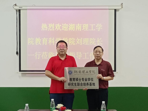 7月9日下午,教育科学学院院长刘理一行来到汨罗市第三中学,为我校教育硕士专业学位研究生联合培养基地授牌。该校校长龚海军热情接待了刘理一行,双方就教育管理和学科教学领域教育硕士实践教学等联合培养问题进行了深入探讨。