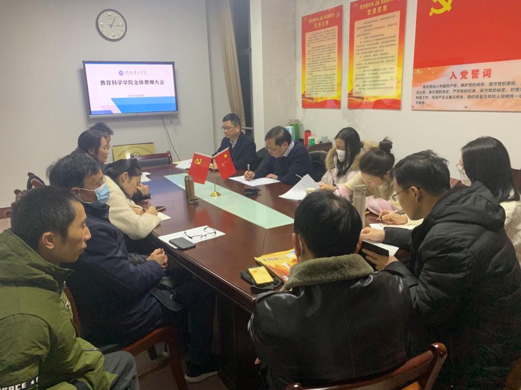 12月28日晚上,教育科学学院在综合楼314会议室召开全院教师大会,讨论、表决学院2021年度二次分配方案。会议由院长、党总支副书记刘理主持,全院教师参会。