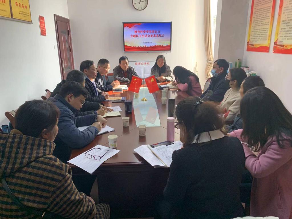 1月12日下午,教育科学学院党总支在综合楼314会议室举行2021年度党史学习教育、巡视整改专题民主生活会的会前征求意见会。学校老领导李明及学院全体教师参会。