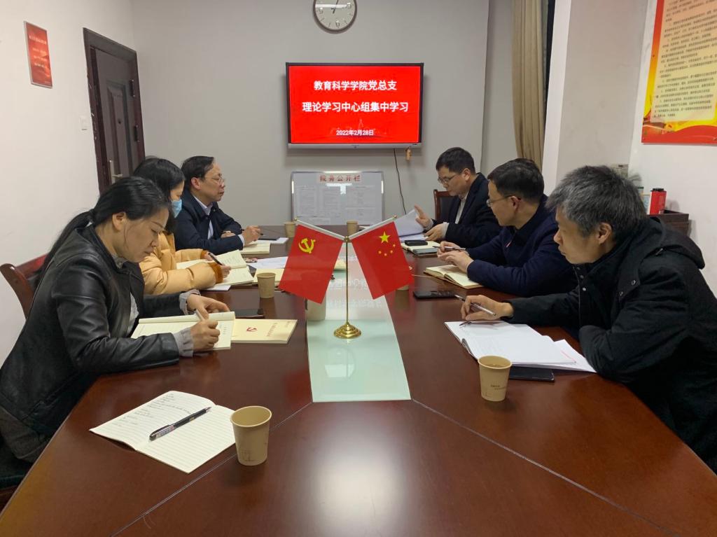 2月28日晚,教育科学学院党总支理论学习中心组在综合楼314会议室进行集中学习。中心组全体成员参加学习。