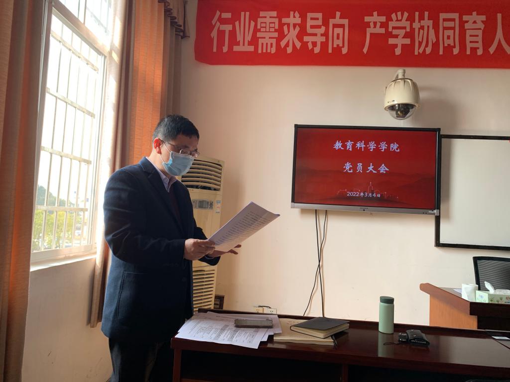 3月4日上午,教育科学学院党总支在1教学楼1303A教室举行理论学习中心组第二次(扩大)集体学习,校党委原书记李明和学院全体共产党员、全体党外教师参加。