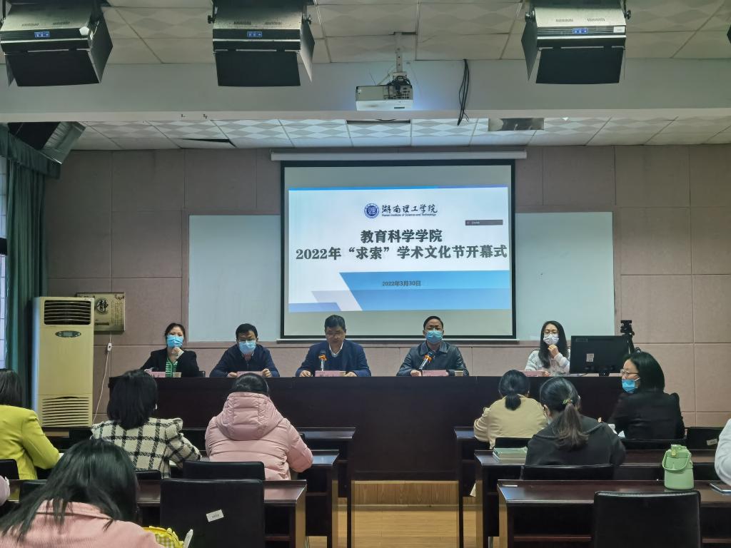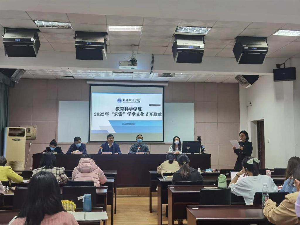 3月30日下午,教育科学学院在1号教学楼1302教室举行了2022年研究生“求索”学术文化节开幕式。湖南理工学院研究生院院长周从山、教科院院长刘理、副院长彭阳红、教研室主任赖颖慧等教师和2021级教育学科研究生参加,辅导员王炜老师主持。