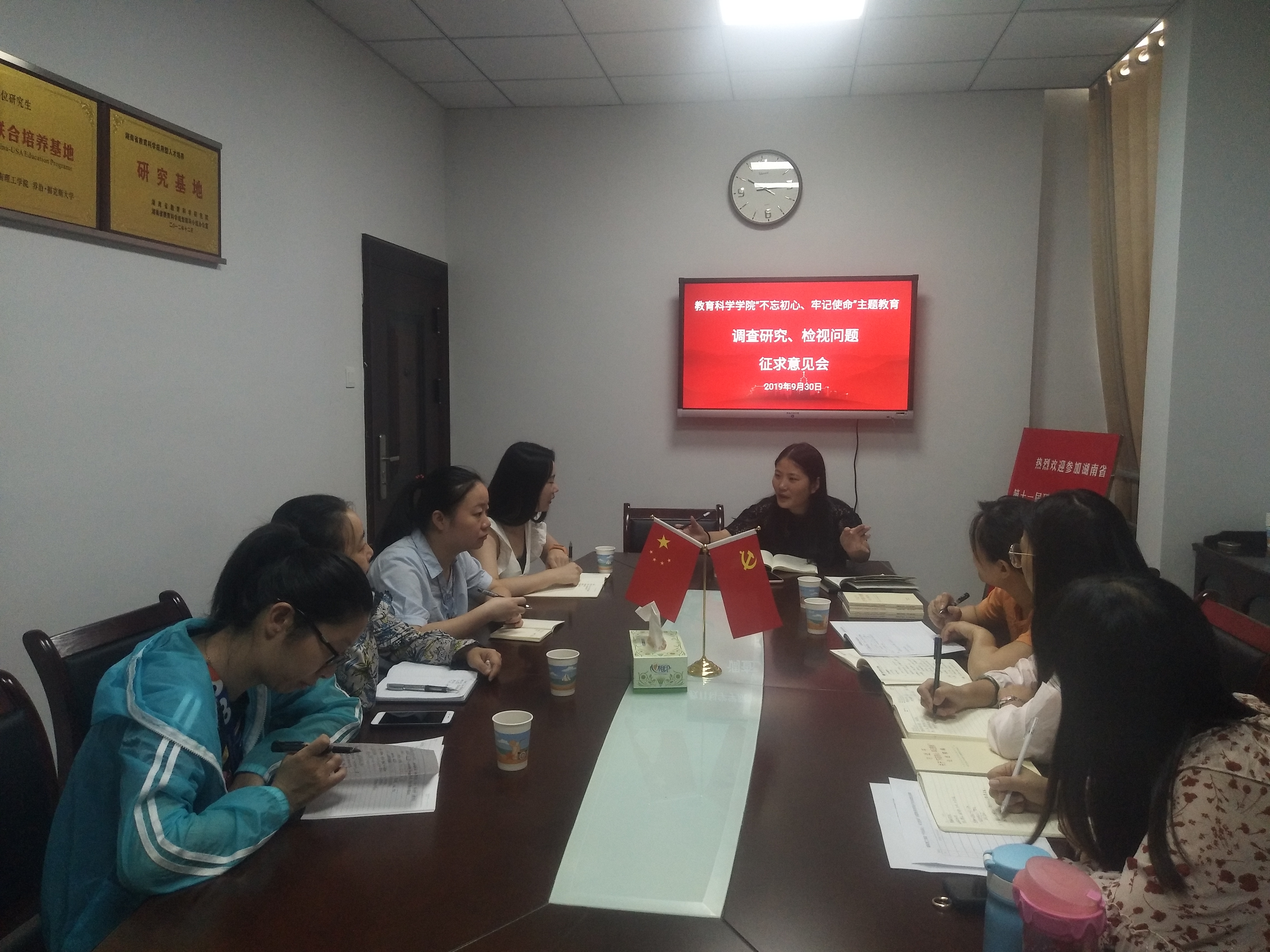 为深入推进“不忘初心、牢记使命”主题教育工作,9月30日上午10时,教育科学学院研究生党支部于综合楼314会议室举行“不忘初心、牢记使命”主题教育调查研究、检视问题征求意见会。本次会议由研究生党支部书记王炜主持,参与人员包括2018级和2019级的研究生党员、群众、班级干部、研究生会干部、寝室长代表等。参会成员覆盖面广,具有较强的代表性。